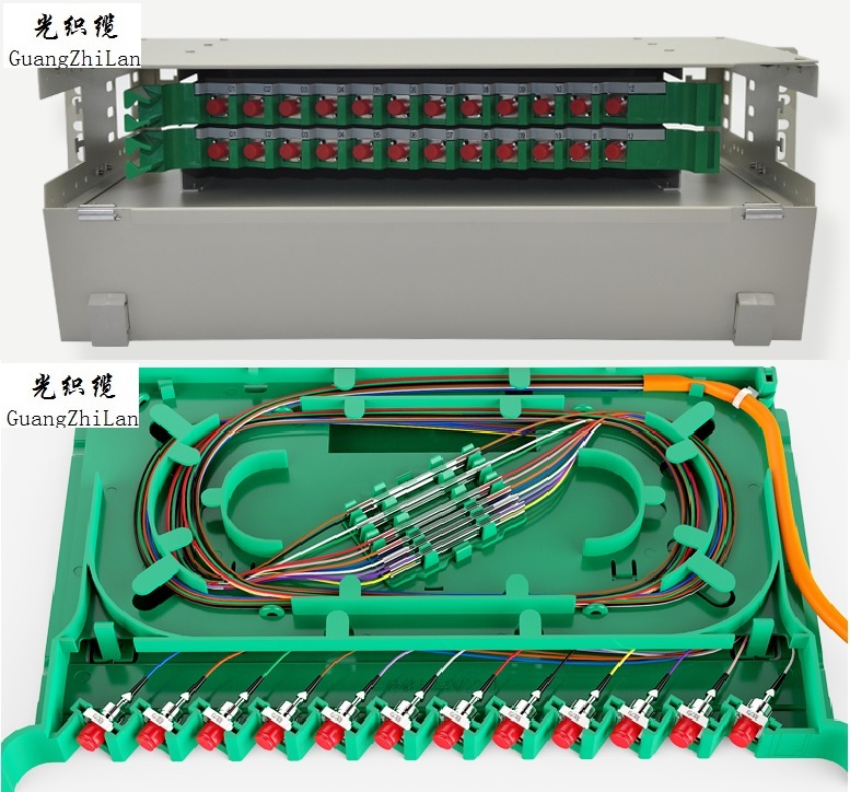 光纖配線架的作用就是將光纜,光纖尾纖和光纖耦合器連接起來保護(hù)。光纜終端盒是光纜的端頭接入的地方,然后通過光跳線接入光交換機(jī)。因此,終端盒通常是安裝在19英寸機(jī)架上的,可以容納光纜端頭的數(shù)量比較多。 終端盒就是將光纜跟尾纖連接起來起保護(hù)作用的。
