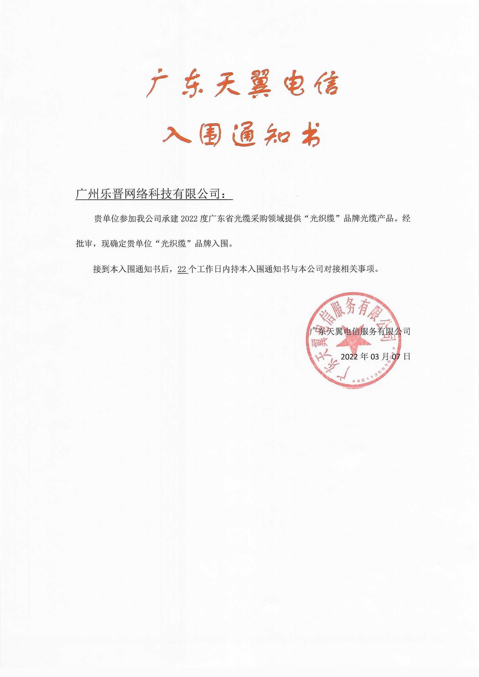 2022年廣東天翼電信服務(wù)有限公司光織纜光纖光纜入圍通知書